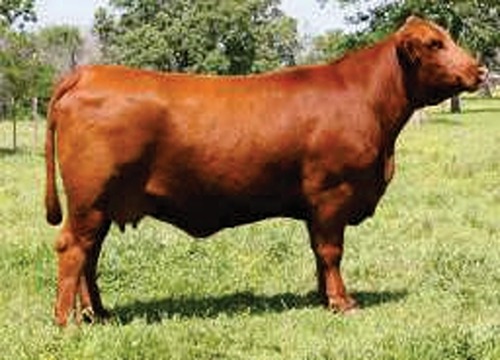 - La madre de Triumph realmente es una matriarca Brangus Rojo. Ella es de talla moderada, gran volumen y diseñada de manera hermosa con una ubre bien balanceada.